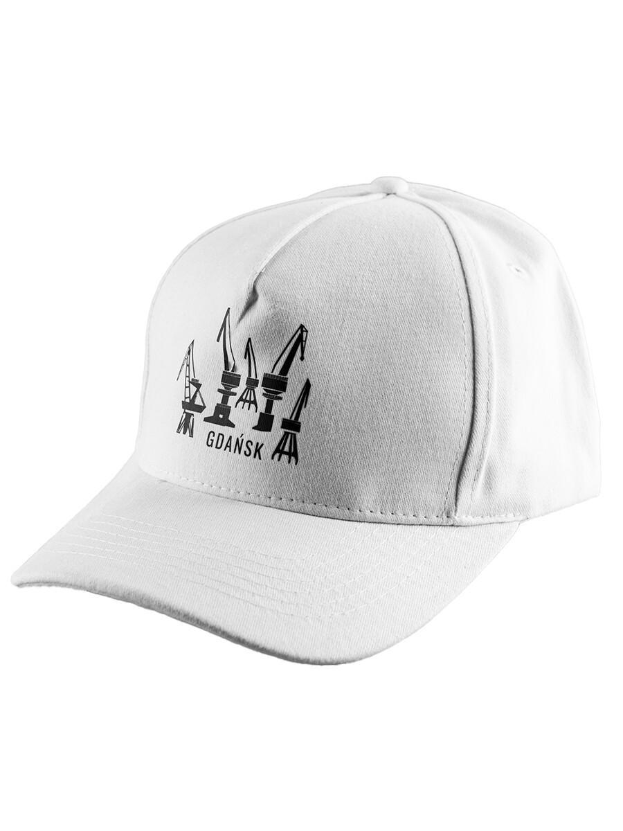 Czapka z daszkiem z motywem gdańskich dźwigów.